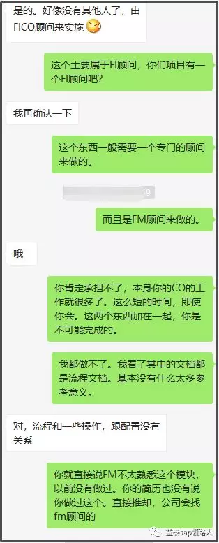 Johnson24又参加了一次面试,这次面试有两位面试官,一个女面试官,一位男面试官。凡是女面试官问的问题Johnson24回答的都还不错。凡是男面试官问的问题,都非常有难度(甚至会问SAP SD模块的深入的价格条件内容,集中问SAP CO的成本结算等方面问题也很有深度和难度),没有成功。这次Johnson24提供了面试过程的文件给我。我很清楚的了解了他的实际面试过程和表现。我们也根据他的面试表现提供相应的补充性的学习辅导材料,让他建立起来信心,以应对下一次面试。