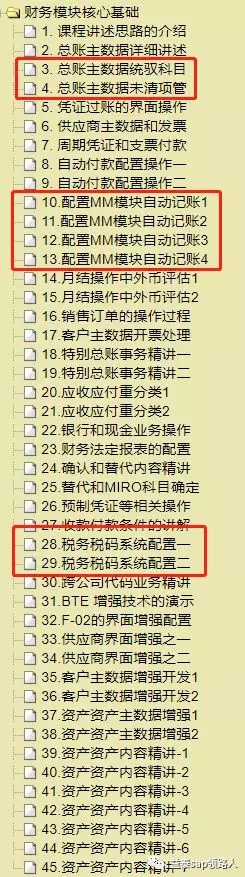 SAP FICO学员在学习完毕SAP FI标准清单课程后,格外附加12节学习内容的说明。