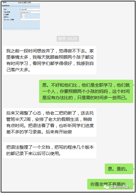 到今天,Mary11完成了第三个报表的开发,这也是值得说一说的事情。因为Mary11是两个孩子的母亲,家里的两个小孩都需自己带,一个很小的,一个稍大些,但是还是要辅导作业的阶段,身边没有老人帮忙带,老公又是互联网行业的从业者。这个忙碌可以想象。所以Mary11能抽取时间的学习往往是安顿了两个小孩睡觉,常常是十点后才开始,学习到晚上12点多。Mary11其实以前也是在互联网行业工作,但是互联网行业的加班强度高,无法照顾小孩。所以只能放弃原有的行业。并选择学习SAP。SAP领域的甲方公司,很多都是非互联网行业,相对来说,没有互联网行业那么多的加班。