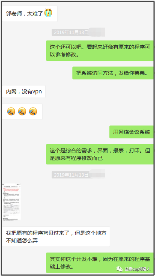 我一直没有和他父亲聊过,家庭条件这么好,为何要把两个子女来学习SAP技术领域的东西。但是从Mary12和Johnson38的学习刻苦,工作努力的程度来看,她们的父母给他们很好的教育了。因为Mary12的弟弟在去年的除夕夜还在学习SAP。学一行,爱一行的典型榜样。