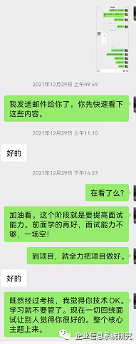 这就好办了。让他看看4433服务器上的一些实际项目工作类的视频材料,以及有助于面试提高的查漏补缺的小细节技术点课程即可参加面试,我认为他的能力OK,面试应该会很容易的。马上就是春节,他就先提前回老家过年了。