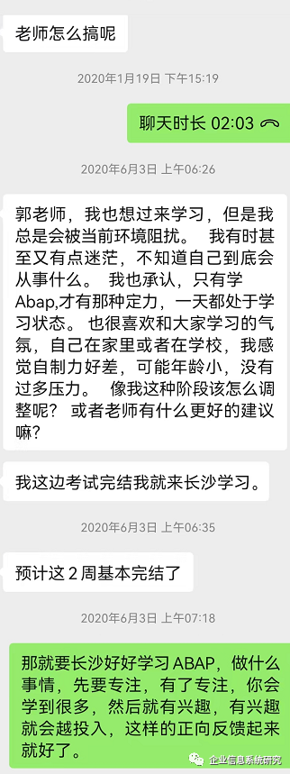 Johnson85是我们历史上跨时间几乎最久的学员了。Johnson85于2019参加高考,当时高考成绩不理想,于2019年7月来长沙集中学习点学SAP课程。