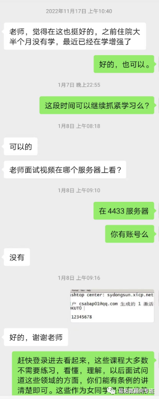在老师的建议下,在没有找到工作前,应该到长沙集中学习点会更好一些,避免在家里各种事情、或者松散的情绪导致对找工作不利,她于2023.02.26再次去长沙,到2023.03.10日参加了第一次面试,第一次面试就通过了。今年,无论从头条新闻等各种信息来看,反而2023年这段时间各种企业裁员,企业关闭营业,就业市场非常艰难,对学员们刚毕业出去找工作充满了挑战。